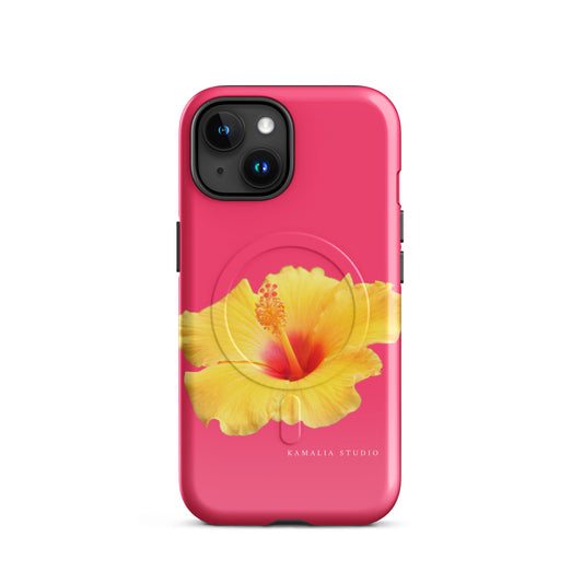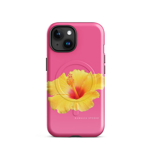Hawaiian Yellow Hibiscus Phone Case in Hot Pink