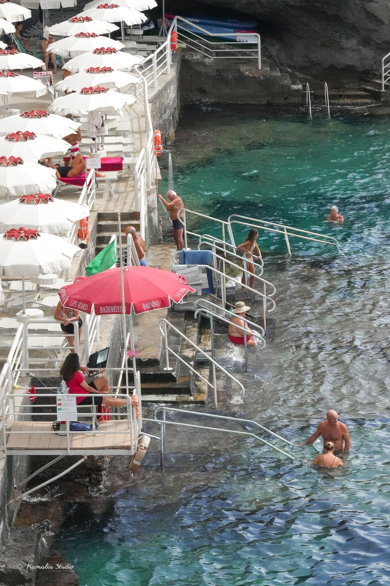 A shot of a Bagno Marino Archi beach club in Puglia, Italy is portrayed in this print.