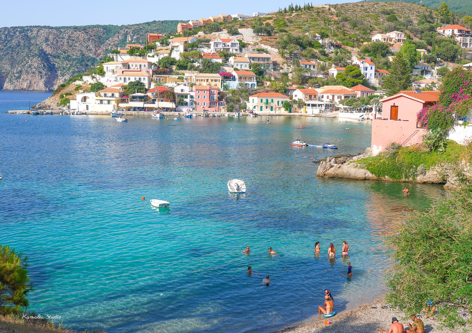 A shot of Assos beach in Kefalonia is portrayed in this print.