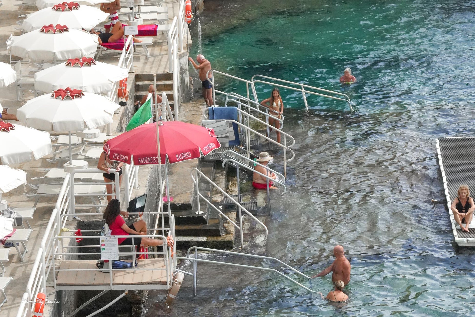 A shot of a Bagno Marino Archi beach club in Puglia, Italy is portrayed in this print.