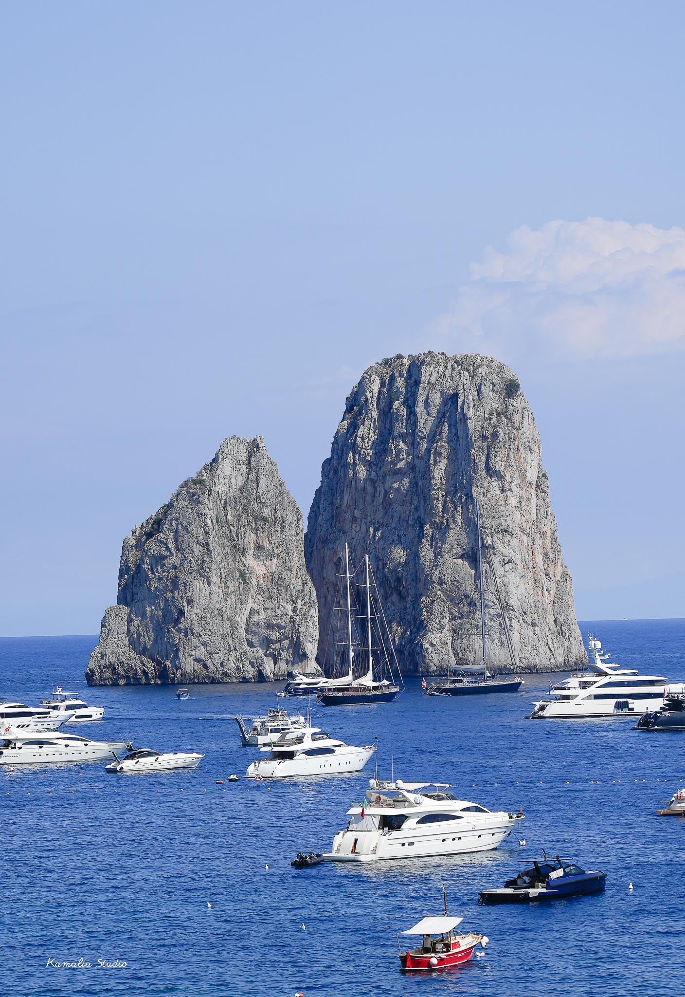 A view of Faraglioni rock in Capri is portrayed in this frameless print. Every print has a backstory, click here to read about what happened in the setting of this one.