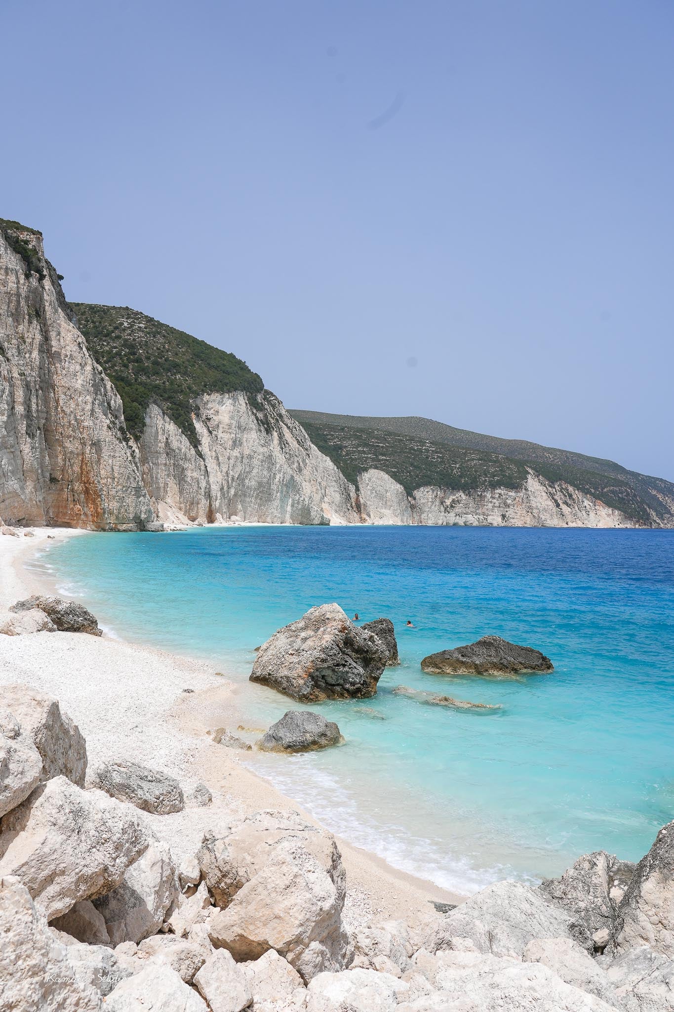 A shot of Fteri beach in Kefalonia is portrayed in this print.