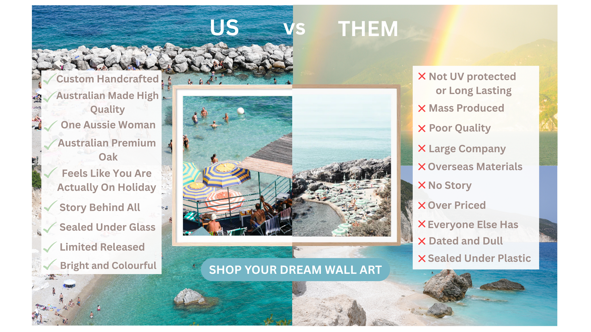 They are handcrafted in Victoria, Australia. Premium Print Framed behind either White or Aussie Raw Oak Premium Framed. Covered with Glass/Premium Acrylic with an acid-free backing board, ready to hang. Rigid String attached to back